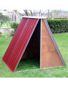 Abri robuste en tôle ondulée avec structure tubulaire galvanisée, conçu pour résister aux intempéries. Faces avant et arrière en contreplaqué marin de 1,5 cm, traité pour une utilisation extérieure durable. Conception polyvalente adaptée aux porcs, moutons, chèvres et autres animaux de ferme.