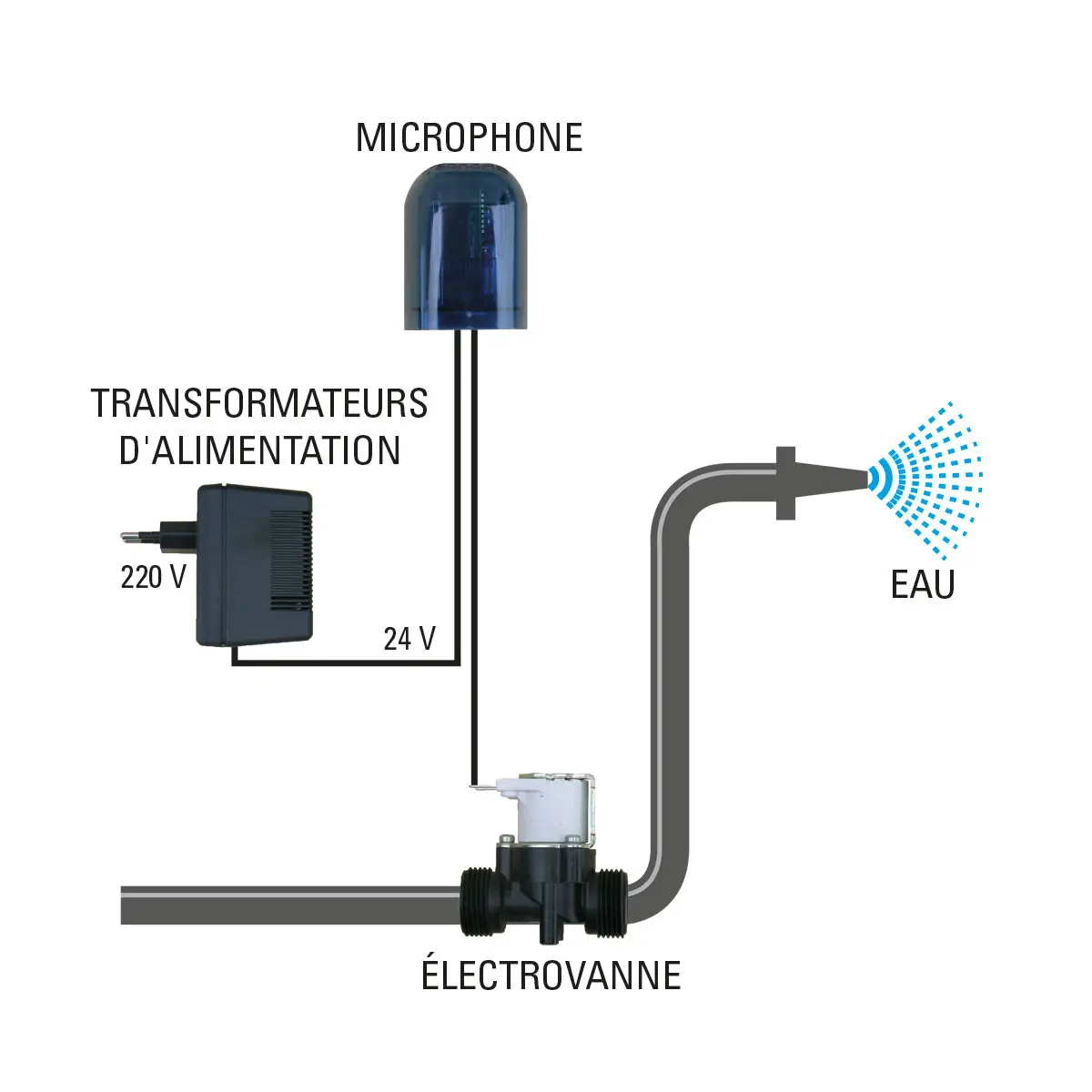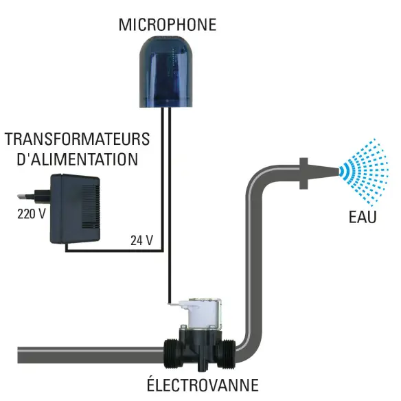 - kit complet avec manuel d'instructions, électrovanne, alimentation 220V (110V sur demande) et microphone
