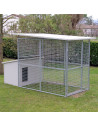 - zone d'habitation réalisée avec des panneaux grillagés, maille 5 x 5 cm, fil 3,9 mm, galvanisés à chaud ; complet avec portail avec verrou de cadenas (peut être agrandi en ajoutant d'autres panneaux)