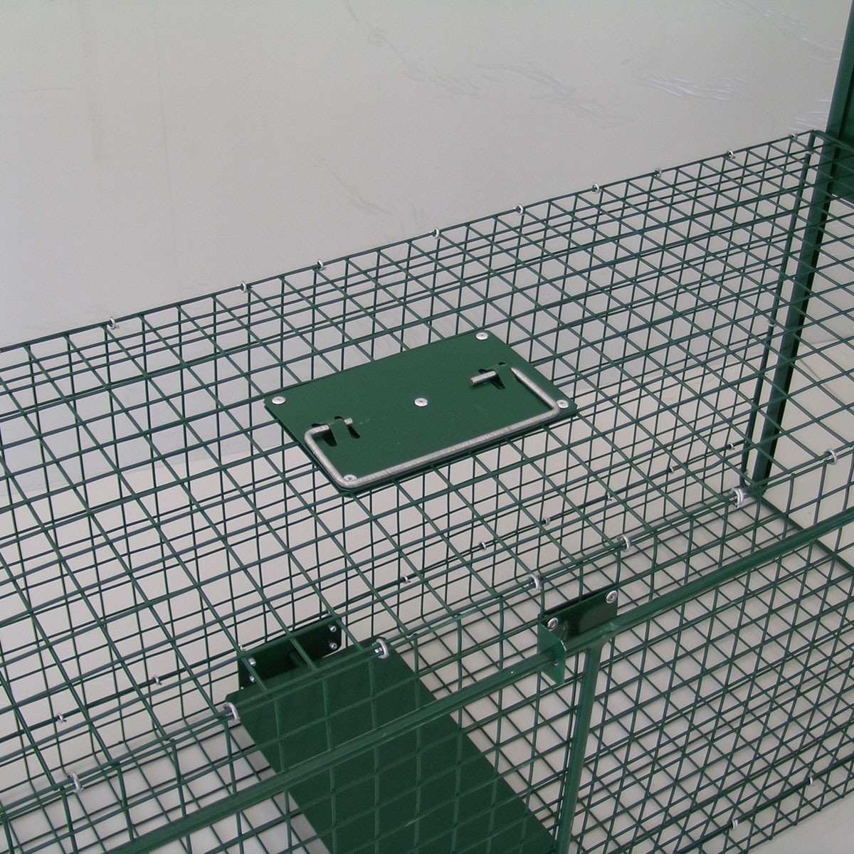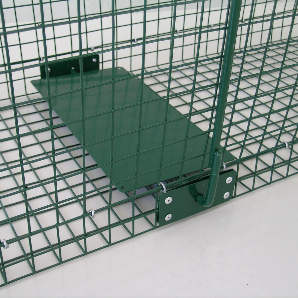 - mod. Grand : filet à mailles 25 x 25 mm, fil 2 mm - la trappe est peinte en vert, ce qui lui permet de se fondre dans l'environnement naturel, augmentant ainsi son efficacité pour capturer les animaux sans les alarmer