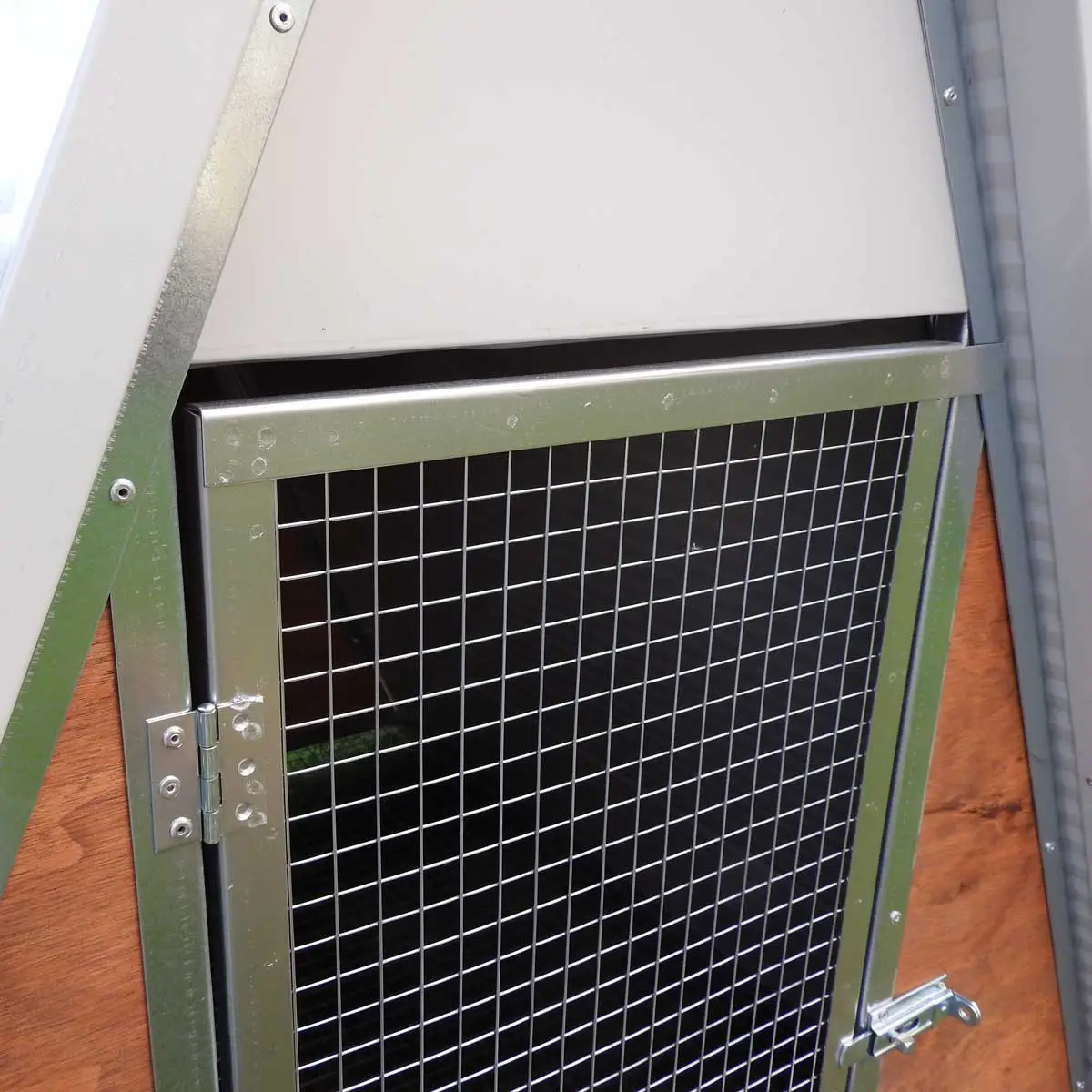 - des accessoires comme des nids ou des clôtures en treillis galvanisé peuvent être ajoutés pour offrir plus de confort et de sécurité aux poules
