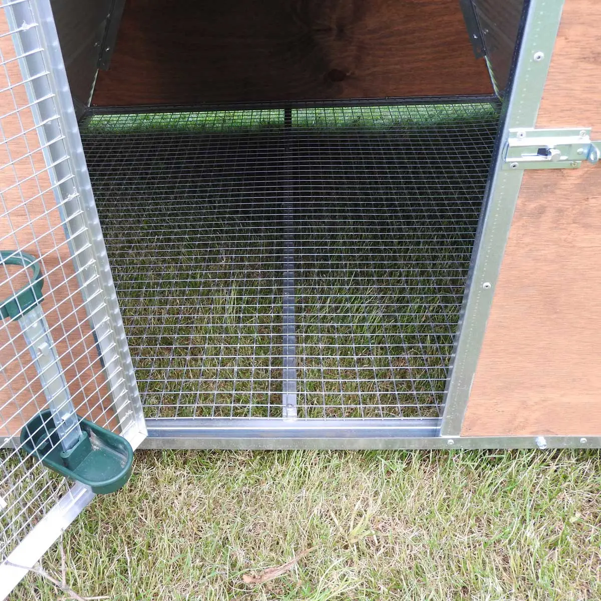 - fond grillagé 25 x 25 mm, épaisseur 2 mm, surélevé de 8 cm pour protéger des éventuels prédateurs comme les belettes, les renards et les martres