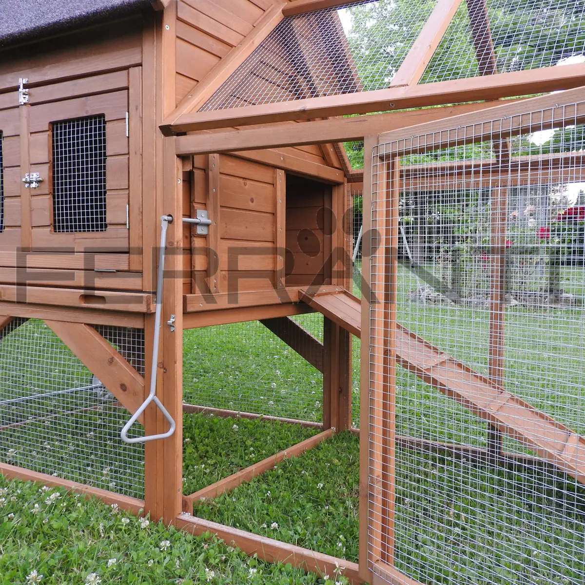 - fenêtre avec filet d'accès et d'inspection interne pouvant être ouverte en deux ou rabattue (dimensions 70 x 38h cm), elle assure un environnement confortable et aéré pour les poules