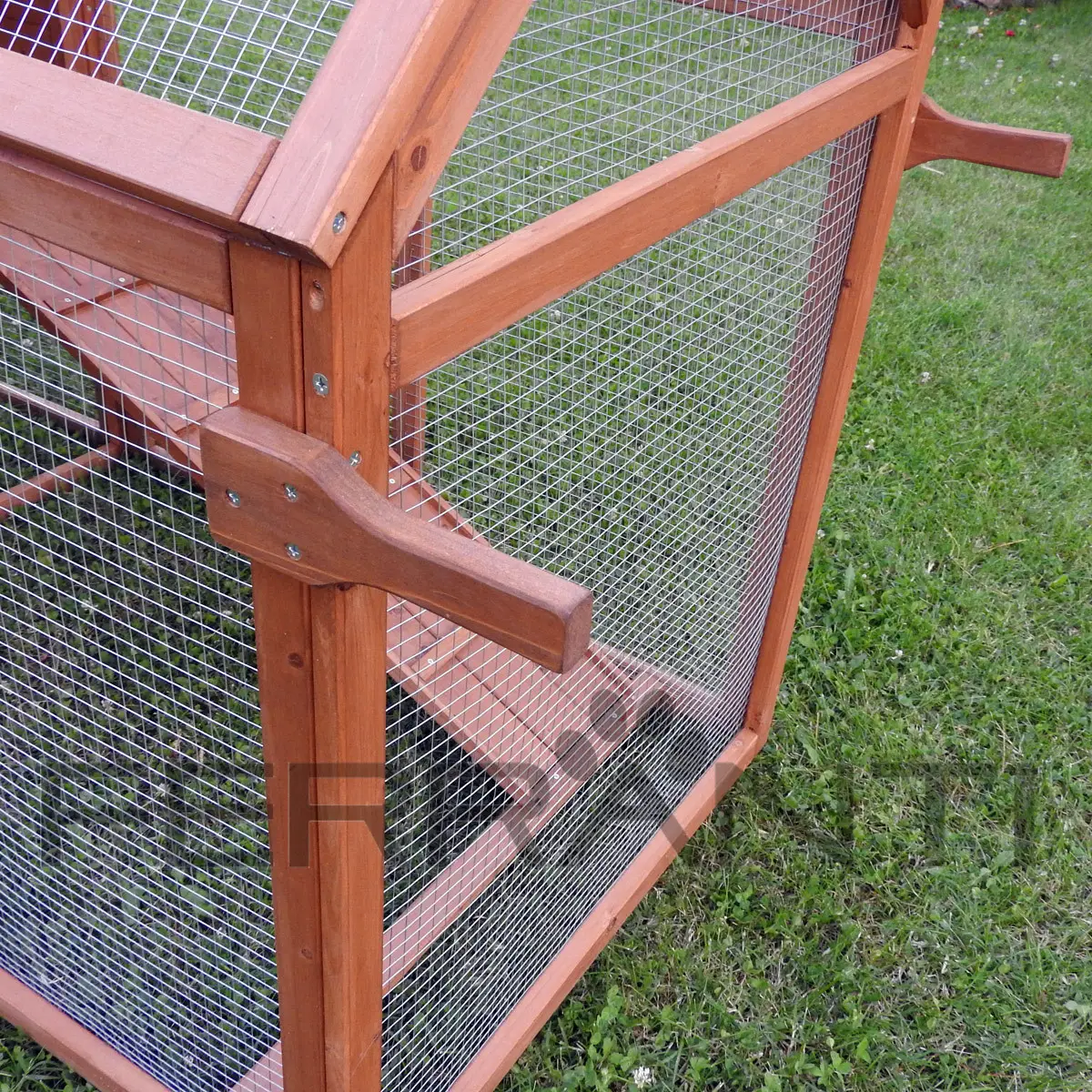 - poulailler mobile en bois, équipé de roues et de poignées avant pour un déplacement facile