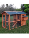 Poulailler en bois naturel, idéal pour poules, canards et autres petits animaux. Ce poulailler professionnel offre un espace de vie spacieux, pouvant accueillir jusqu'à 10 poules, avec tous les accessoires inclus pour assurer leur confort et sécurité.
