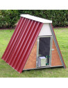 - matériaux : structure en tôle galvanisée, toit en tôle ondulée rouge Sienne, arrière en contreplaqué marin traité, façade en grillage et bois, qui assurent qualité et résistance